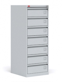 Шкаф картотечный металлический (картотека). Предназначен для хранения документов в формате А5. Имеет семь выдвижных ящиков, разделенных перегородкой. Благодаря телескопическим направляющим каждый ящик может быть выдвинут полностью на всю глубину.